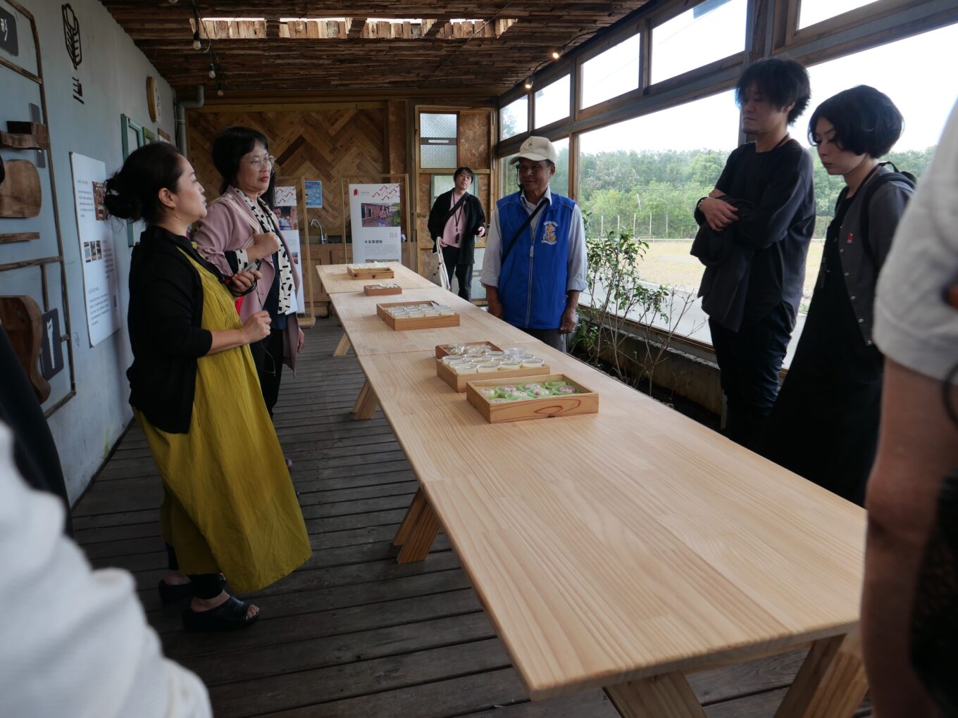 初回からそうなのですが、今回も、工藝週のコンテンツ前後などに、日本からの参加3チームを、地域振興や工藝振興の拠点となっているところへ、案内してくれました。農業生産活動に、高齢者の活動参画(下の2枚目の写真は、高齢者も腰を痛めることなく作業ができる菜園の工夫)や菓子作り体験などを繋いで、地域の拠点となっている農園や、木工所、製材所などなど・・・。毎回、学びの多い時間です。