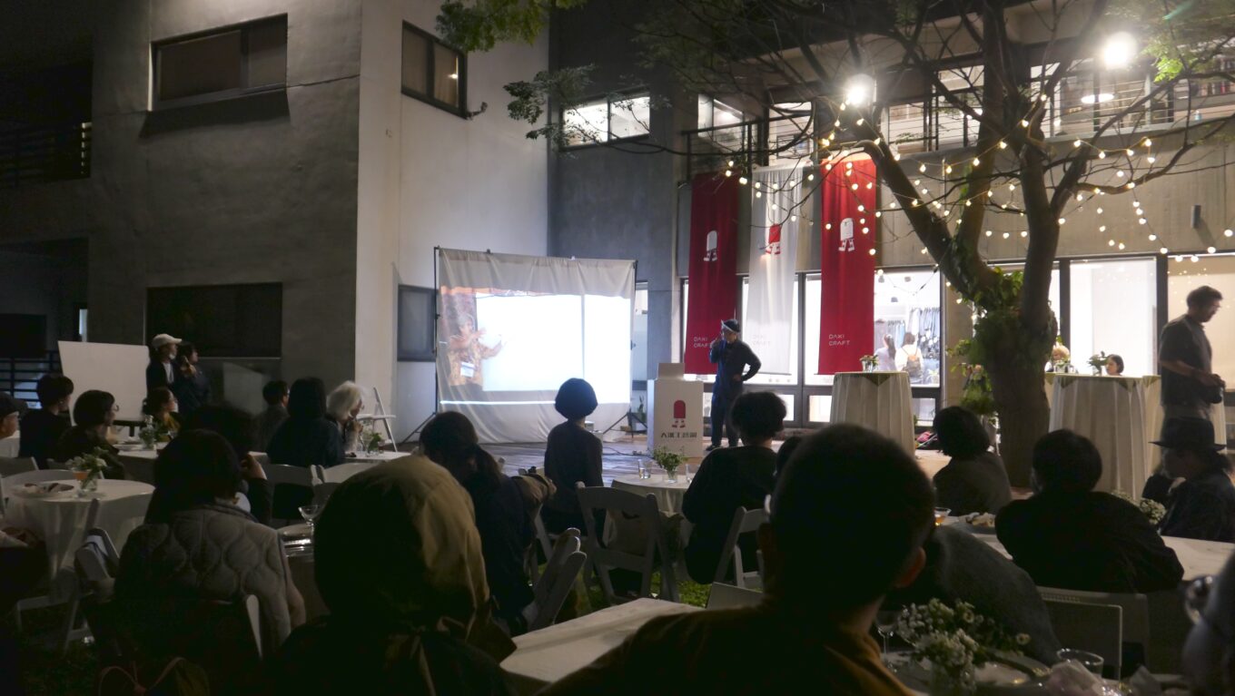 週末の2日間のイベントの前夜に、Chouseの本社で「交流夕食会&ペチャクチャナイト」を開いてくれました。庭にテーブルが並べられ、デッキには、プロジェクターとスクリーン。
